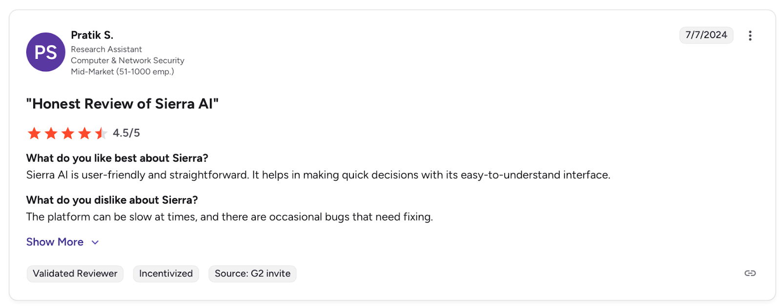 Con: "The platform can be slow at times, and there are occasional bugs that need fixing." β Pratik S., G2