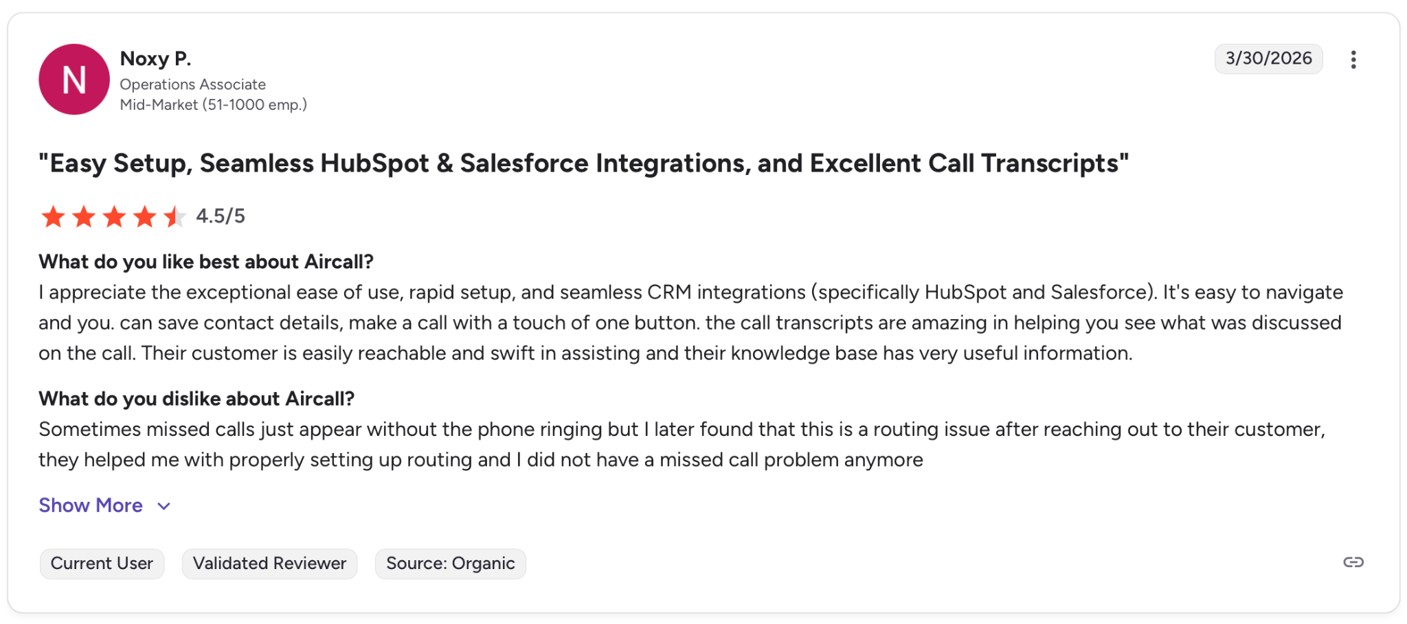 - Choose Aircall if your team already runs on Aircall and you want AI handling added on top without adding another tool to the stack.