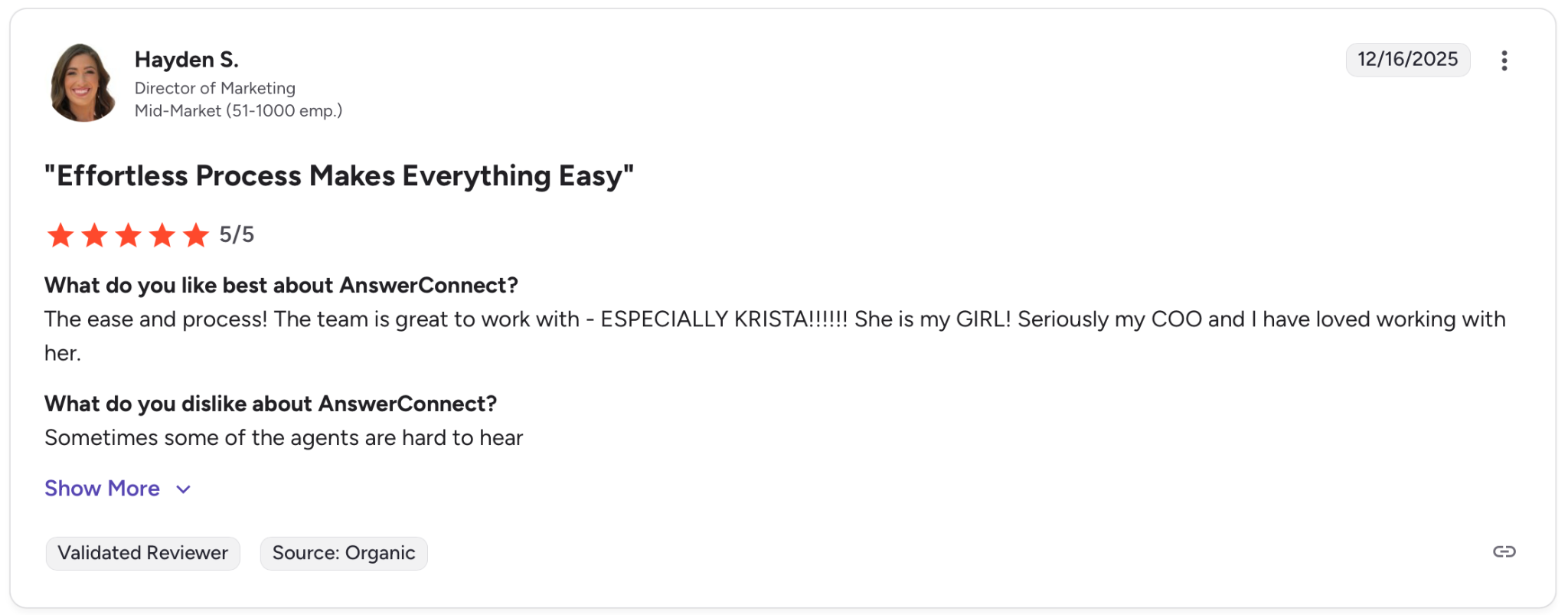 "Sometimes some of the agents are hard to hear." โ Hayden S., G2