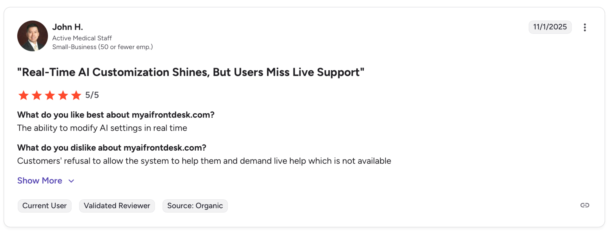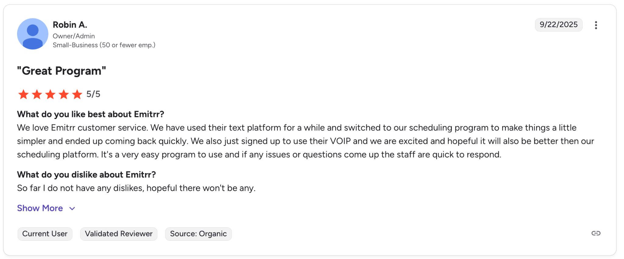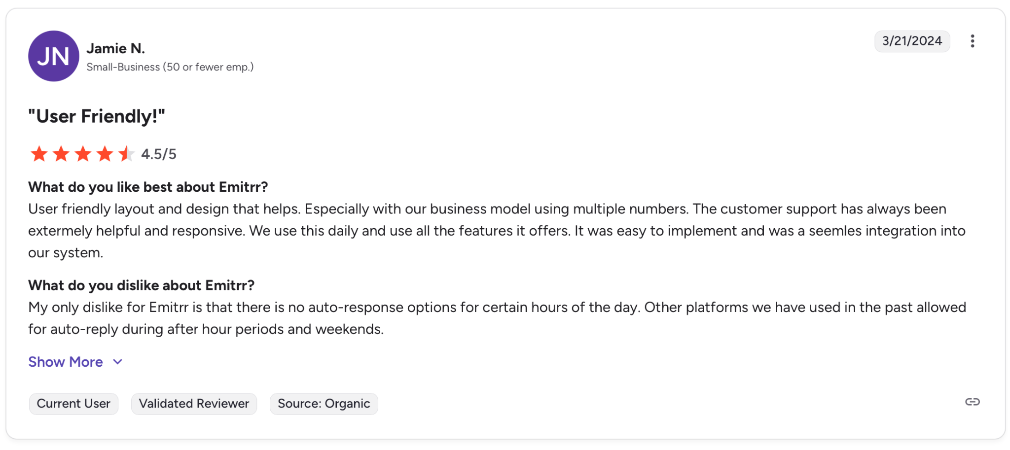 "If there's anything to point out, it's that the initial setup takes a bit of fine-tuning to get the conversational flows exactly right." โ Tanya R., G2
