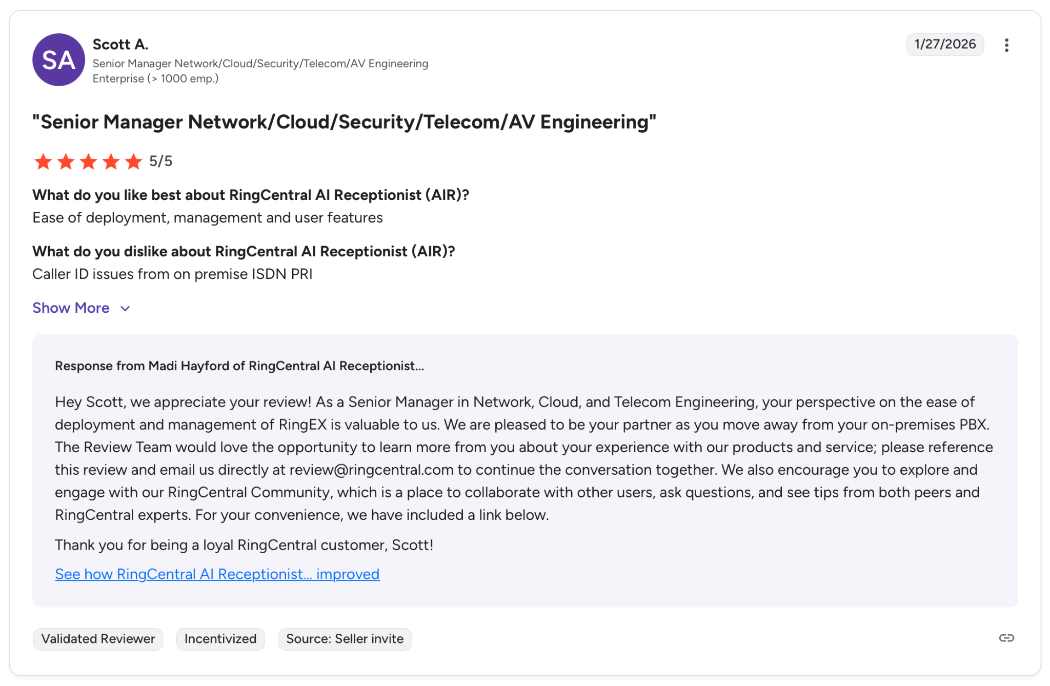 "Caller ID issues from on premise ISDN PRI." โ Scott A., G2