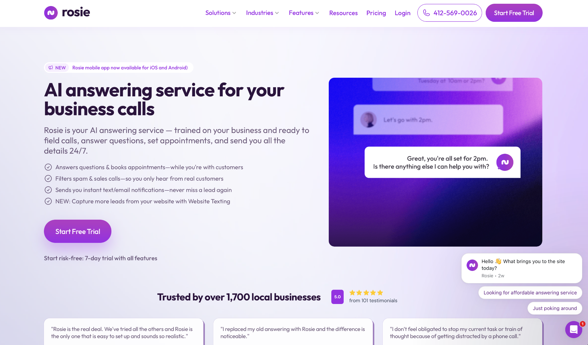 2. Rosie AI: Best for Local Businesses That Can't Afford to Miss a Call