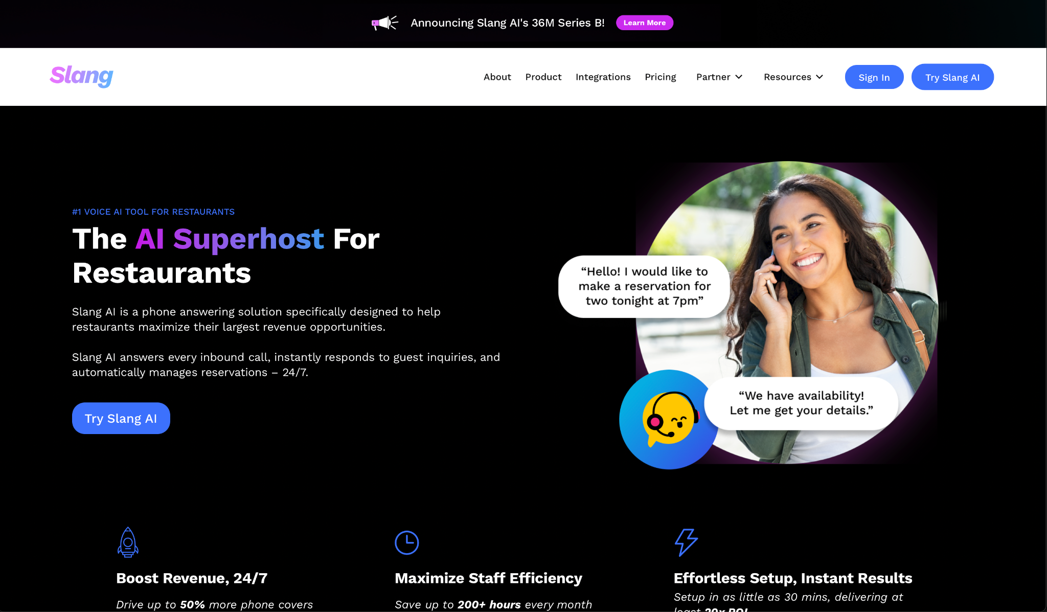 Slang.ai is the right fit for established restaurant groups where missed reservation calls translate directly into lost revenue. For independent restaurants or anyone needing complex order handling, the price and the limitations will show up fast.