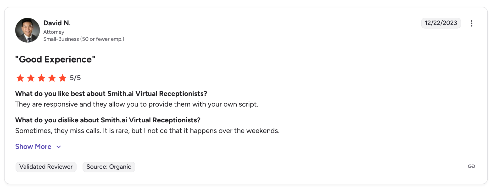 Smith.ai is the right fit for professional services businesses where losing a client over a bad call is a real cost. If you're on the monthly plan and call volume spikes unexpectedly, the overage costs will hurt before support does anything about it.
