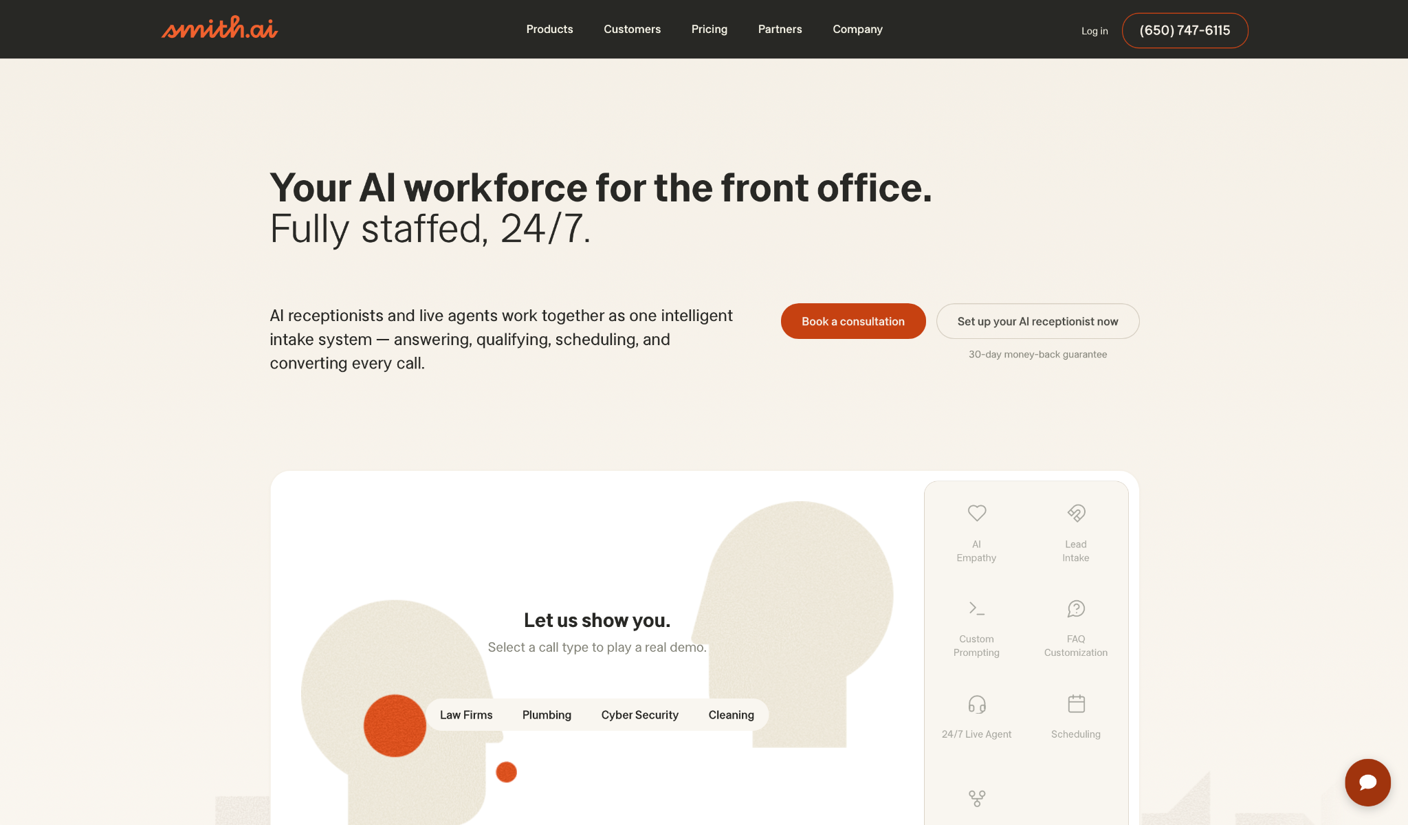 What it does: Smith.ai combines AI call handling with a network of live agents who step in when a conversation needs a human touch, available 24/7.