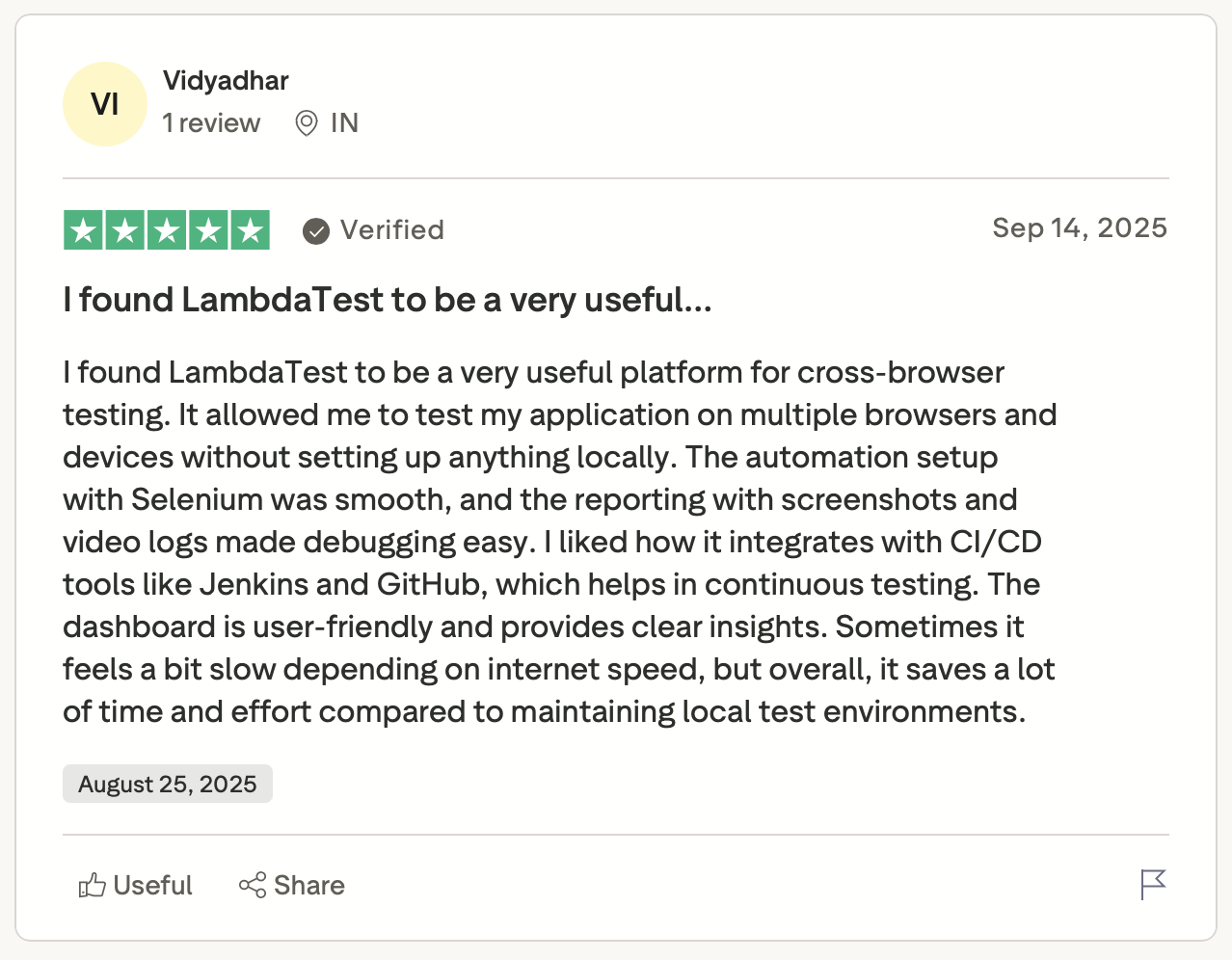 After going through LambdaTest test infrastructure reviews, the story is consistent: strong on speed and coverage, inconsistent on real-device precision.