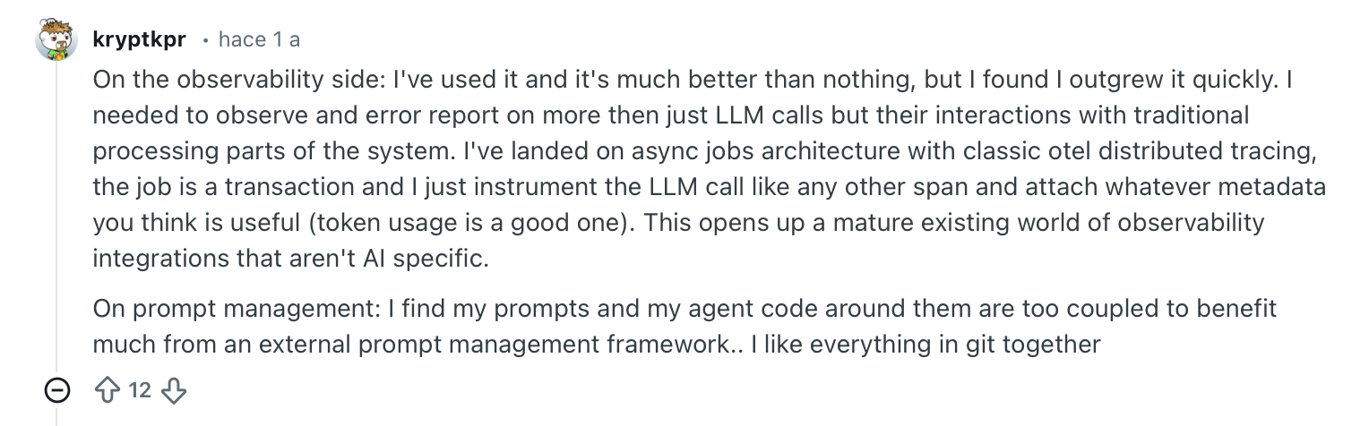 Con: "On the observability side: I've used it and it's much better than nothing, but I found I outgrew it quickly." β Verified User, Reddit