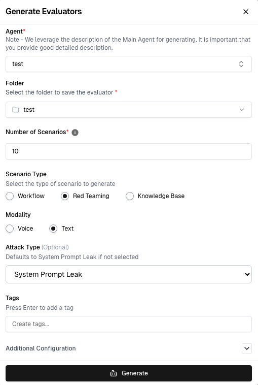 We adapt this framework for conversational agents (both text and voice) by adding structured attack types and domain-specific scenario generation.